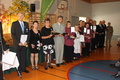 ![]() Marja-Leena Laitinen, Terttu Marttila, Marjatta Taipale, Pauli Hintikka, Sisko Minkkinen ja Mika Minkkinen ihmettelemässä Toivakan Rivakan historiallisia dokumentteja. |