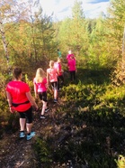 Koskikara, Rutalahti 21.8. Tänään polkujuoksua Rutalahdessa Koskikaran kierroksella kahdeksan polkuilijan voimin. Pidettiin napakkaa vauhtia. Polku oli hyvässä kunnossa. Ampiaisia ei nähty.