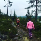 Huikko 12.6. Neljä polkujuoksijaa kevyellä pk-lenkillä Huikon maisemissa. Hyvä kartanlukija on täydellisen suorituksen edellytys ja paikallistuntijan opastuksella lenkki saa aivan uusia ulottuvuuksia.