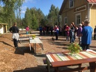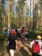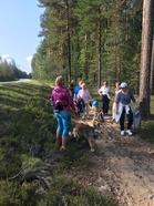 Sunnuntaina 2.9. klo 11 kokoonnuttiin lenkkikirkkoa varten Huikon kylätalon pihassa. Alkujumppa oli Rivakan vastuulla ja siinä valmistauduttiin jopa Urakkalahden ylitykseen uimalla, mutta ihan sellaista ei matkalla kuitenkaan tullut vastaan. Alkujumpan jälkeen siirryttiin Huikon laavulle metsäreittiä kävellen kukin omaan tahtiinsa. Välillä pysähdyttiin hiljentymään ja laulamaan. Huikon laavulla nautimme virvoittavaa mehua ja kuulimme rohkaisevia sanoja. Lopuksi palasimme metsäreittiä takaisin kylätalolle Eläkeliiton tarjoamille kirkkokahveille ja paistoimme makkaraa kylätalon uudella kodalla. Lenkkikirkossa viitisenkymmentä jalkaparia asteli Huikon kankahilla hikoillen ja hiljentyen. |
